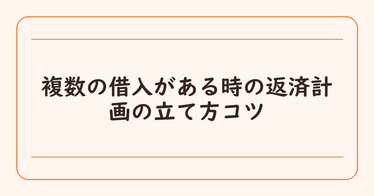 複数の借入がある場合の返済計画の立て方についての基本 初心者 複数の借入がある場合、どのように返済計画を立てればいいのかがわかりません。 専門家 まずは、自分の収入や支出を把握し、各借入の金利や返済額を確認することが大切です。 初心者 具体...